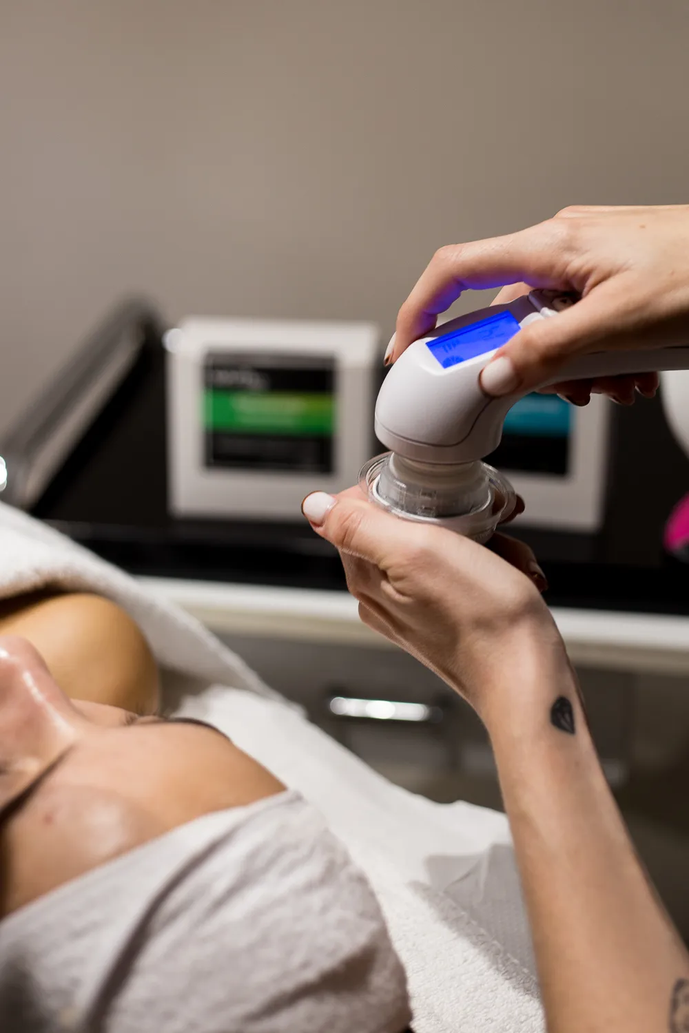 Se realiza una microdermoabrasión profunda mediante micropartículas de alto poder exfoliante. Este proceso elimina células muertas, activa la microcirculación, estimula el drenaje linfático y mejora la receptividad de la piel.